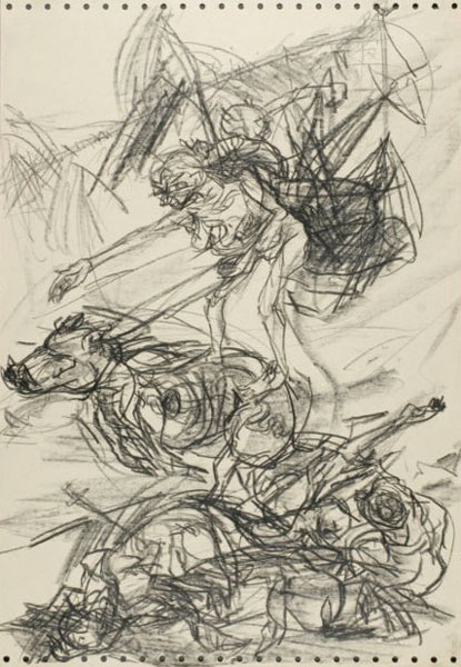 Die Versuchung, 2004, Kreidezeichnung, 30,5*44 cm