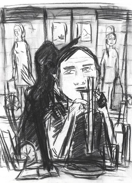 Samstags, 2008, Kohlezeichnung, 53*39 cm