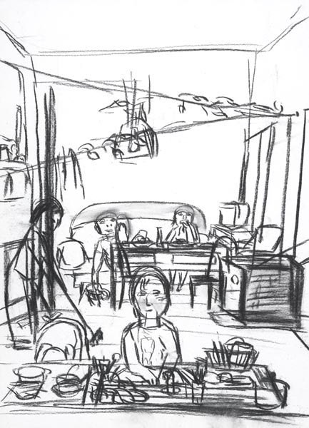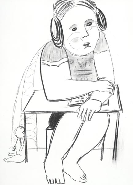 Hausaufgaben, 2008, Kohlezeichnung, 53*39 cm