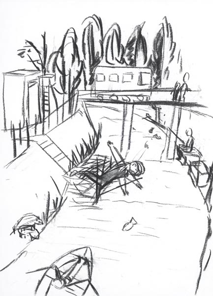 Entenbrücke, 2008, Kohlezeichnung, 53*39 cm