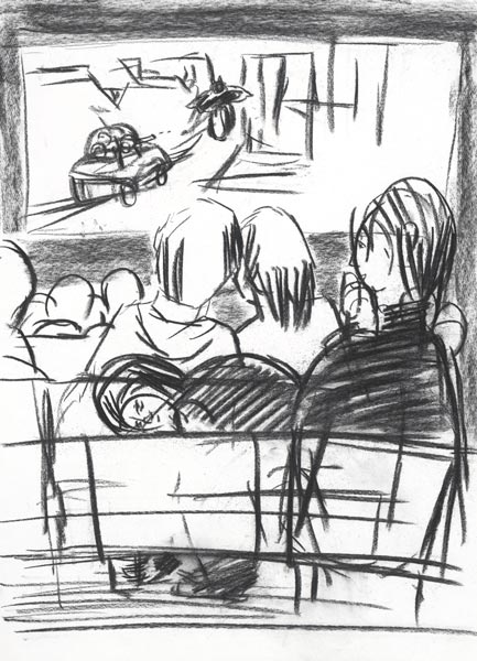 Im Kino, 2008, Kohlezeichnung, 53*39 cm
