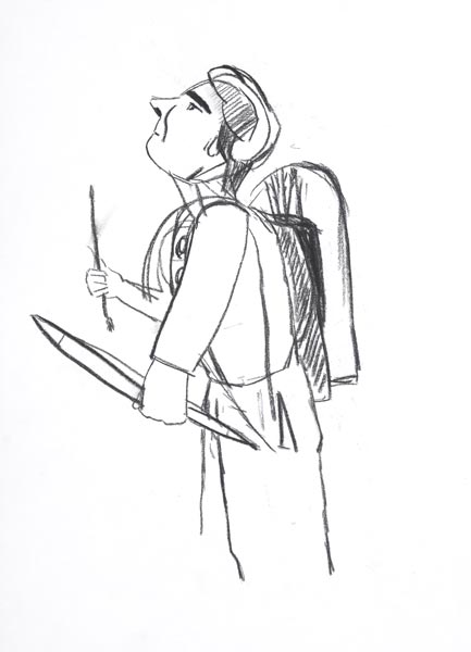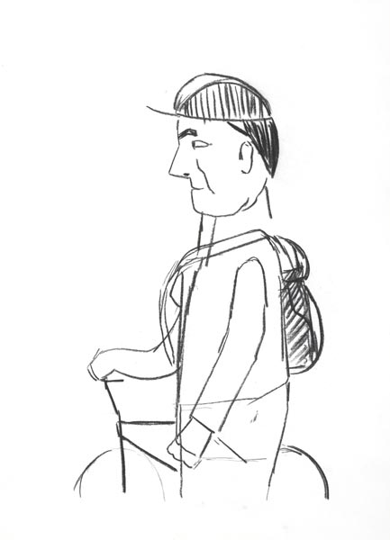 Der Radfahrer, 2008, Kohlezeichnung, 53*39 cm