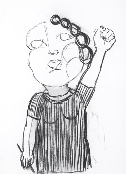 Barbies Befreiung, 2008, Kohlezeichnung, 53*39 cm