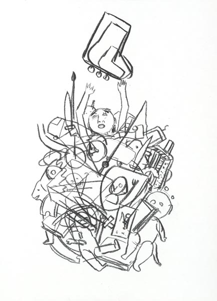 zu viel, 2008, Kohlezeichnung, 53*39 cm