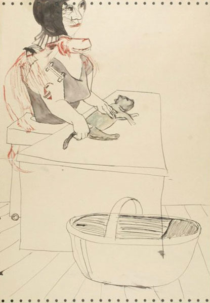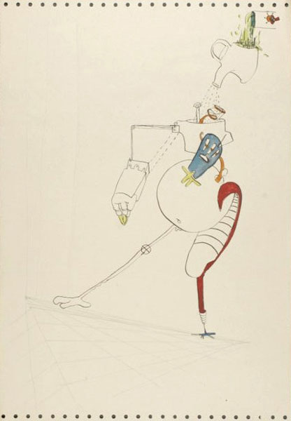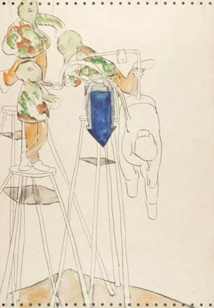 Wie bedient man ein Schnabeltier?, 2004, farbige Tuschzeichnung, 44*30,5 cm