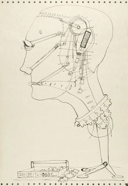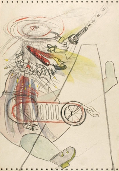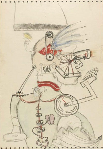 Mensch-Maschine, 2004, farbige Kohlezeichnung, 44*30,5 cm