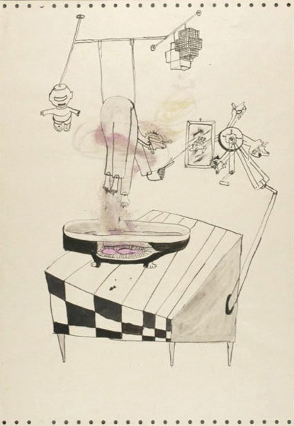 Hypnose in Pink, 2004, farbige Tuschzeichnung, 30,5*44 cm